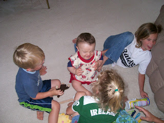 I know, I know. I'm terrible. After all we went through to get Abe sleeping through the night a month and a half ago, I let it slide. He got sick and was running a high fever for a few days and I just couldn't let him cry in that condition. Then he was cutting 5 top teeth and I just couldn't do it. Next thing I knew I was getting up to nurse once or twice a night again. This week we toughed it out...again. Last night he fell asleep about 9:15 and he is still asleep!!!! It is 8:2o and I haven't heard a peep ALL NIGHT LONG! Hooray! I'm really excited (maybe that's all the sleep I got going to my head) Hopefully it will stick this time.